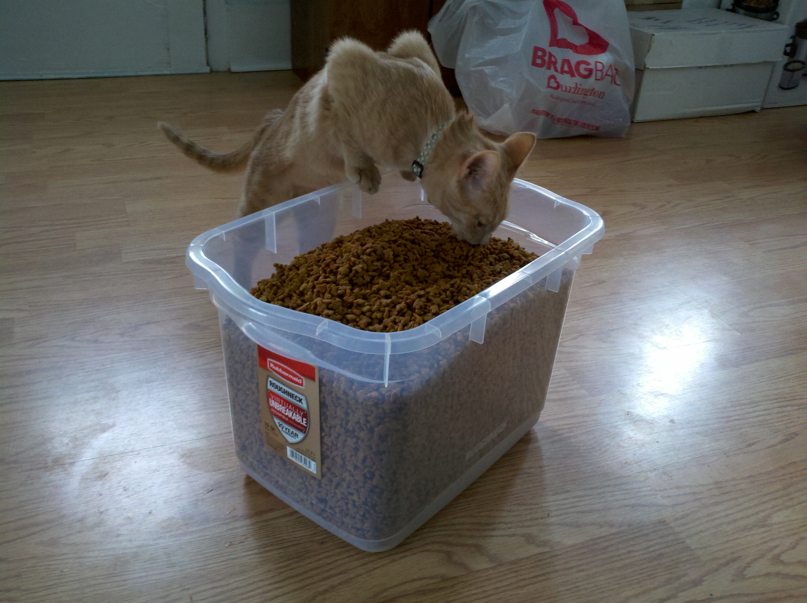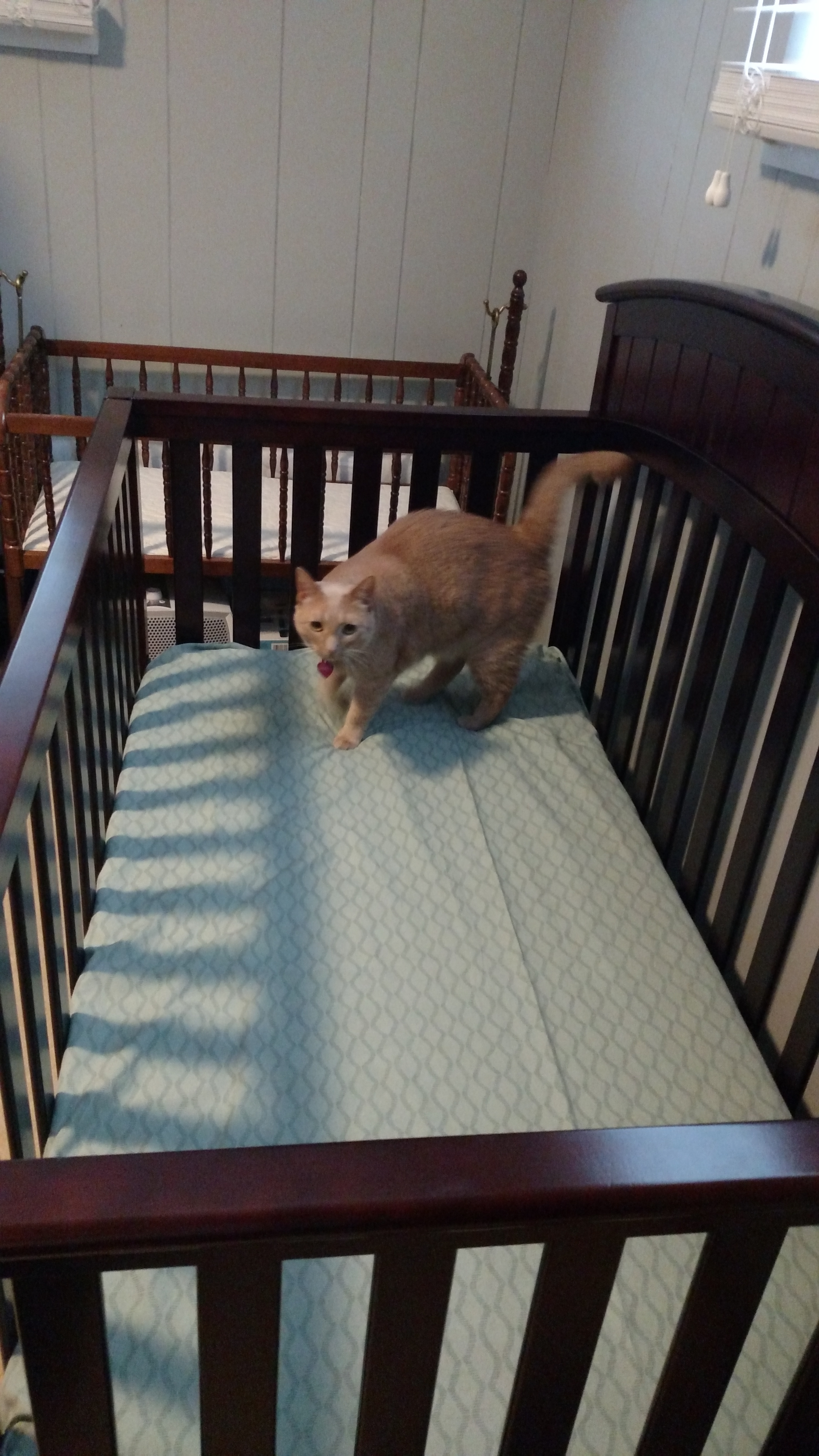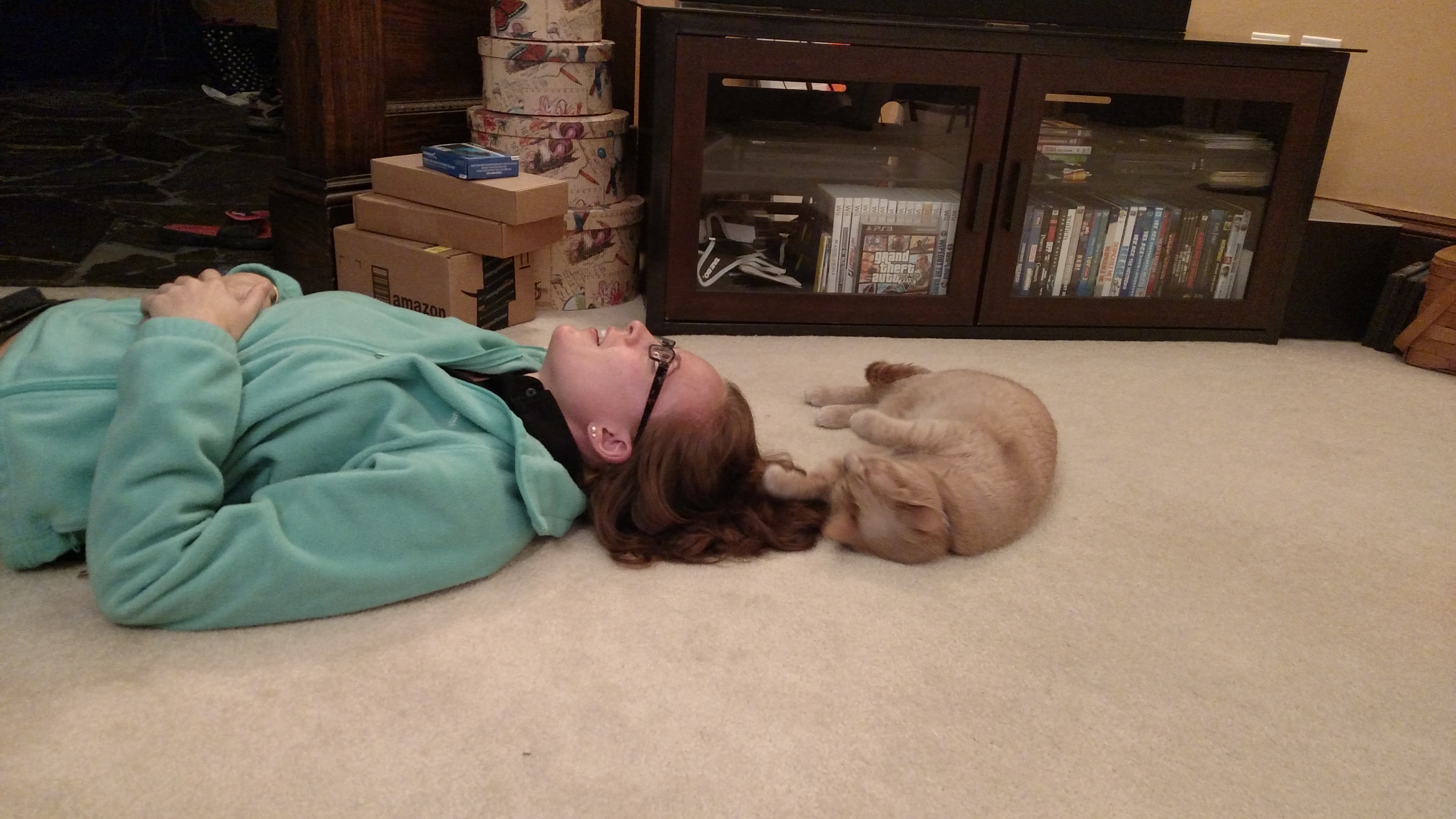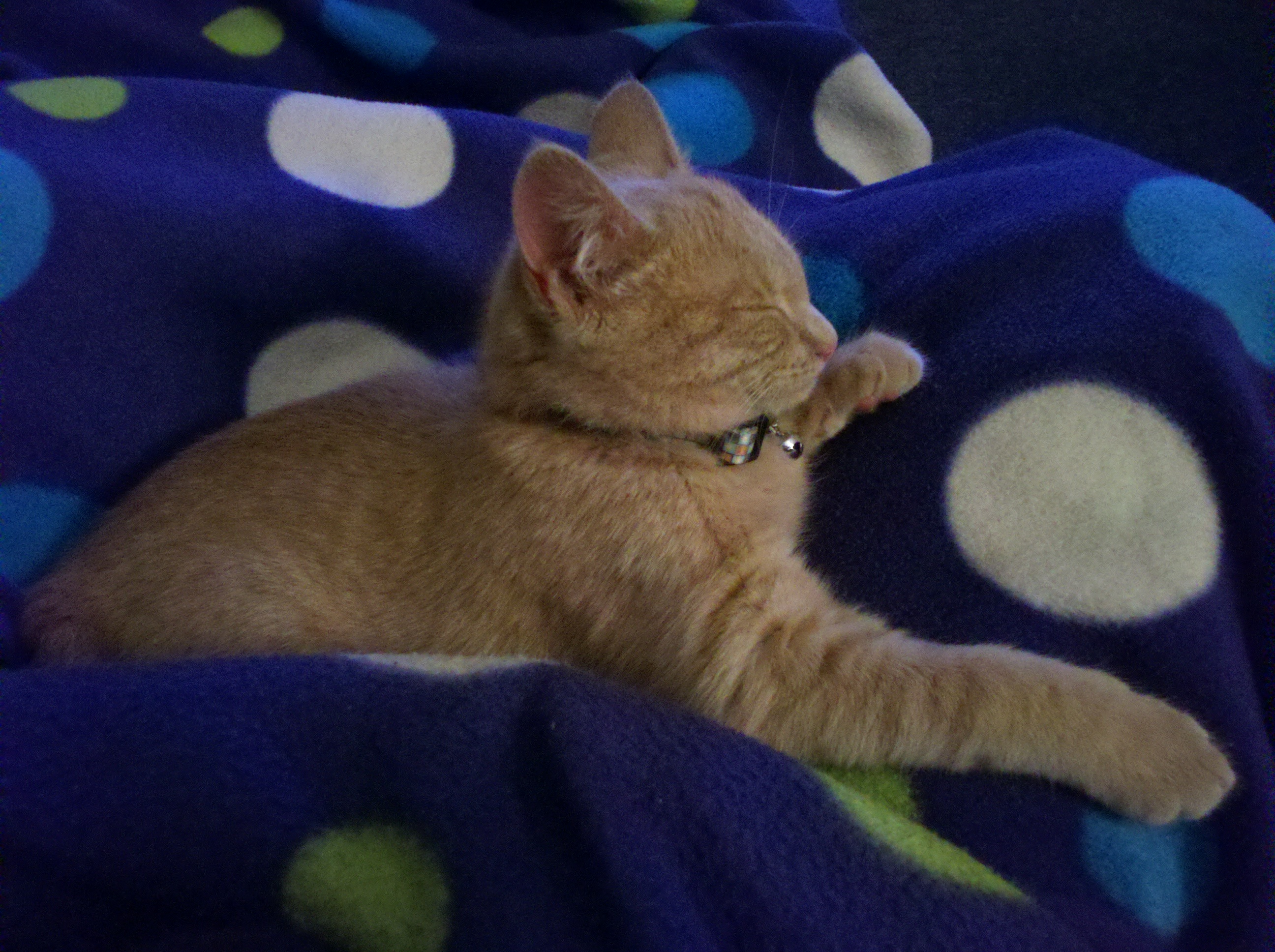 We first met Cinnamon when Abby and I were heading back from her parent’s house the day after Thanksgiving. We had seen a sign on the way saying “Free Kittens Available” and agreed that if they were still available when we got back we would stop in and adopt. We fell in love with Cinnamon (Nala) right away. They didn’t have any pet carriers so we wrapped her up in a green towel for the ride home.