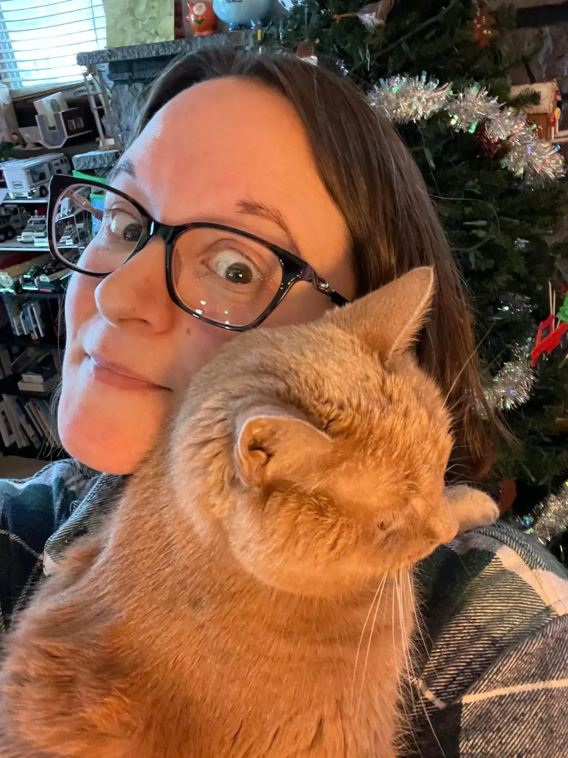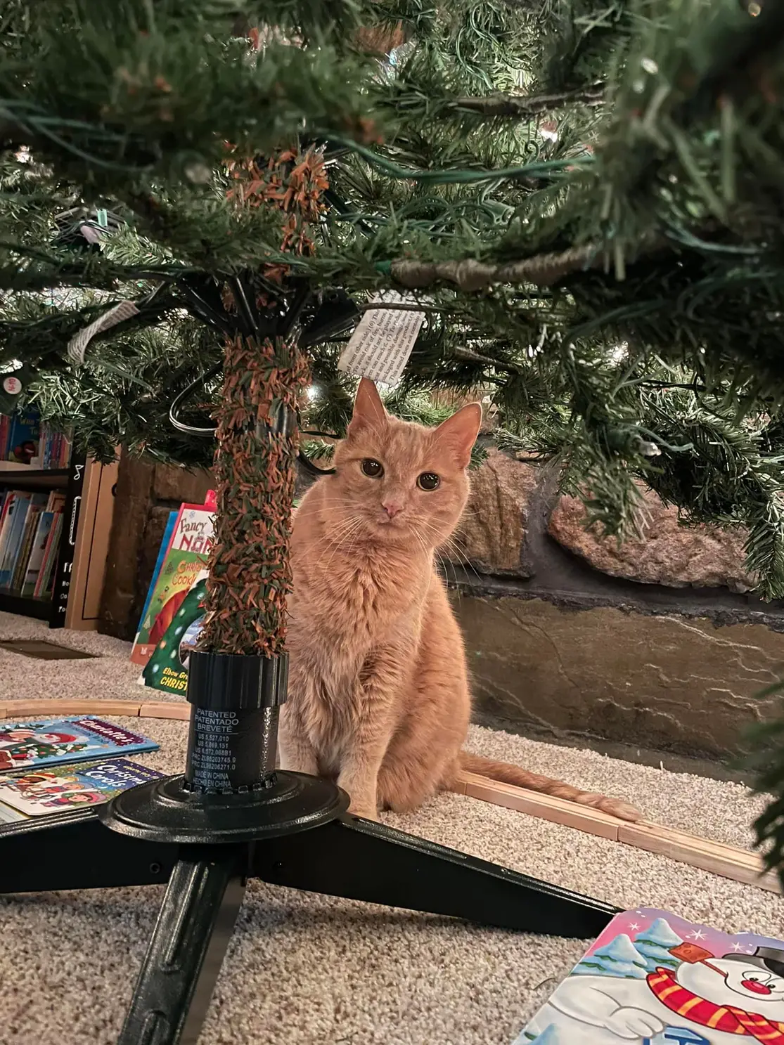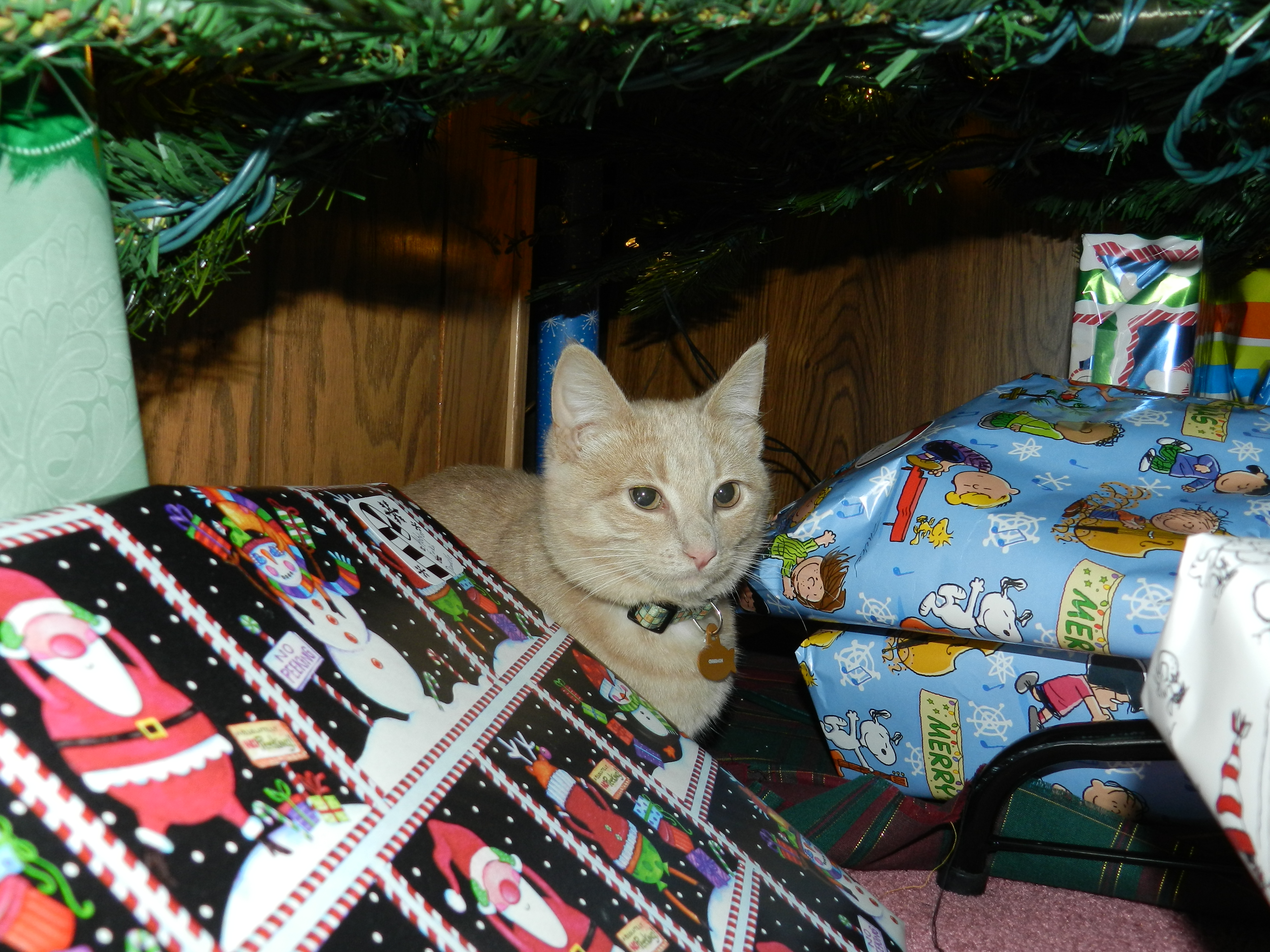 Her favorite place around Christmas time was under the tree and sometimes in the tree.
