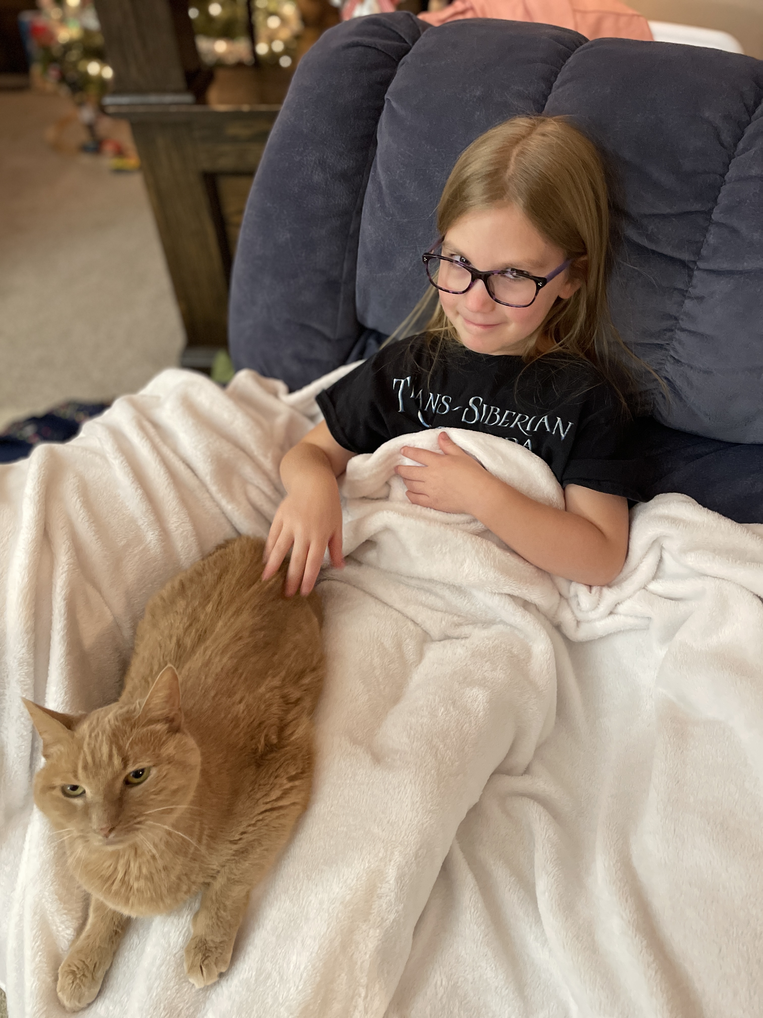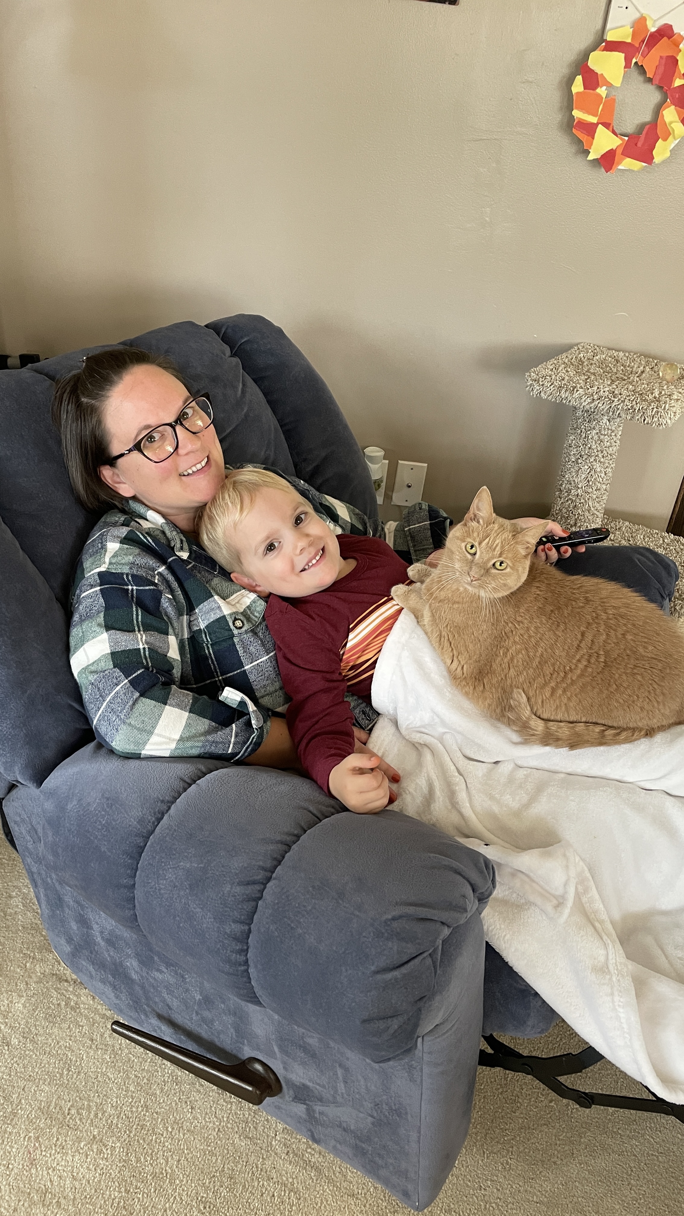 She enjoyed snuggle time with the family.