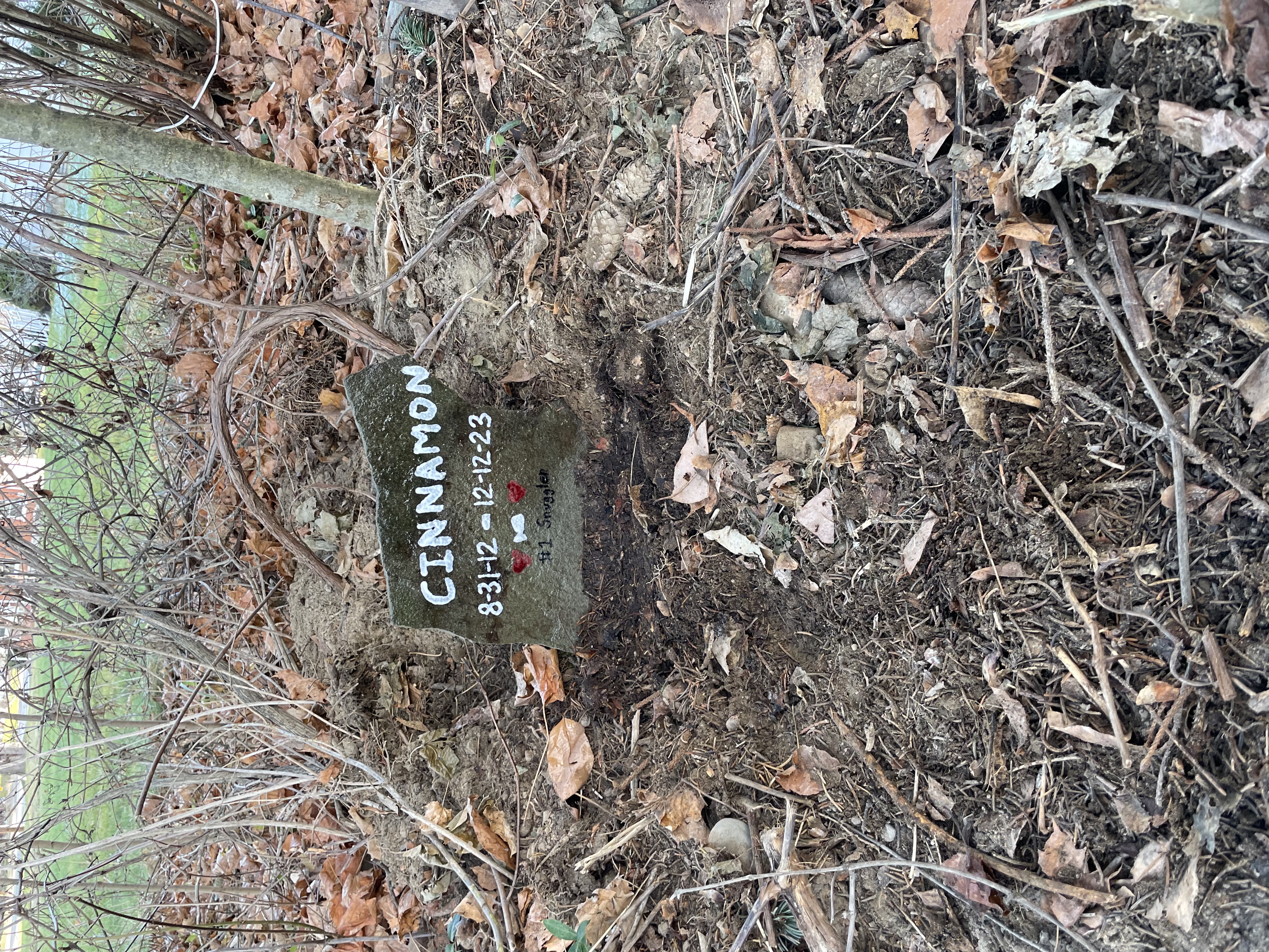 We laid Cinnamon to rest in our backyard near where we laid Whiskers, our outdoor cat, to rest last year. We had a funeral for her where we let the kids say goodbye one last time. I knew it would be hard, but we felt it was important for the kids to see her one last time. Abby made a lovely headstone, and the kids painted some rocks in memory of her. This is my tribute to the memory of Cinnamon.